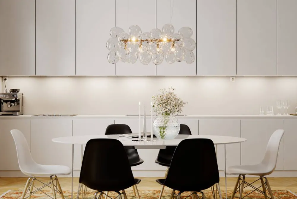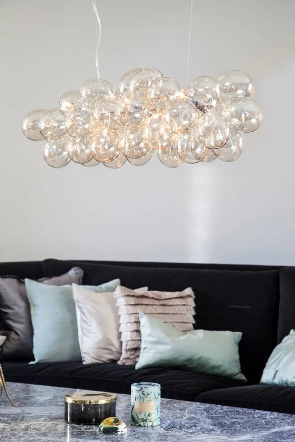 38 kirkkaasta lasipallosta, muodostuva riippuvalaisin. Upea muotoilu tuo tilaan kevyttä ilmavuutta ja modernia eleganss…