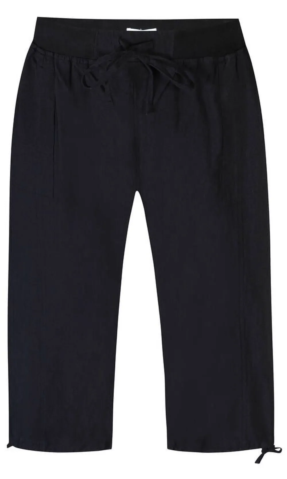 Rennosti istuvat caprit kuminauhavyötäröllä. Lahkeissa on solmittavat kiristysnauhat.Lisää tietojaPlus-mitoitusLah…