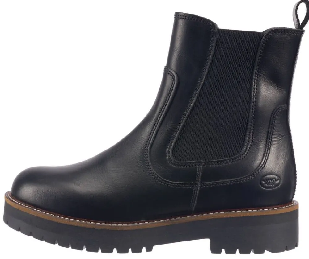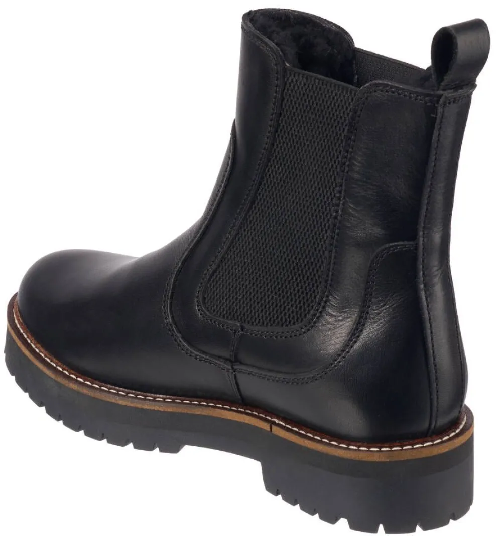 Yksinkertaisen kauniit pintanahkaiset chelseat, joissa on lämmin lampaanturkisvuori ja -sisäpohja. Kengässä on venyk…