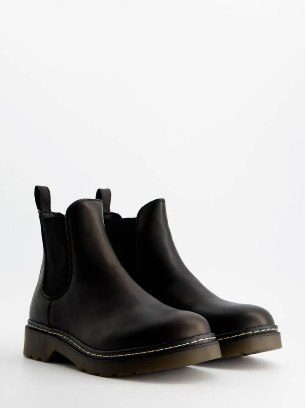 Huipputyylikkäät nappanahkaiset nilkkurit, joissa on venykkeet molemin puolin. Ulkopohja on hieman läpikuultavaa kumi…