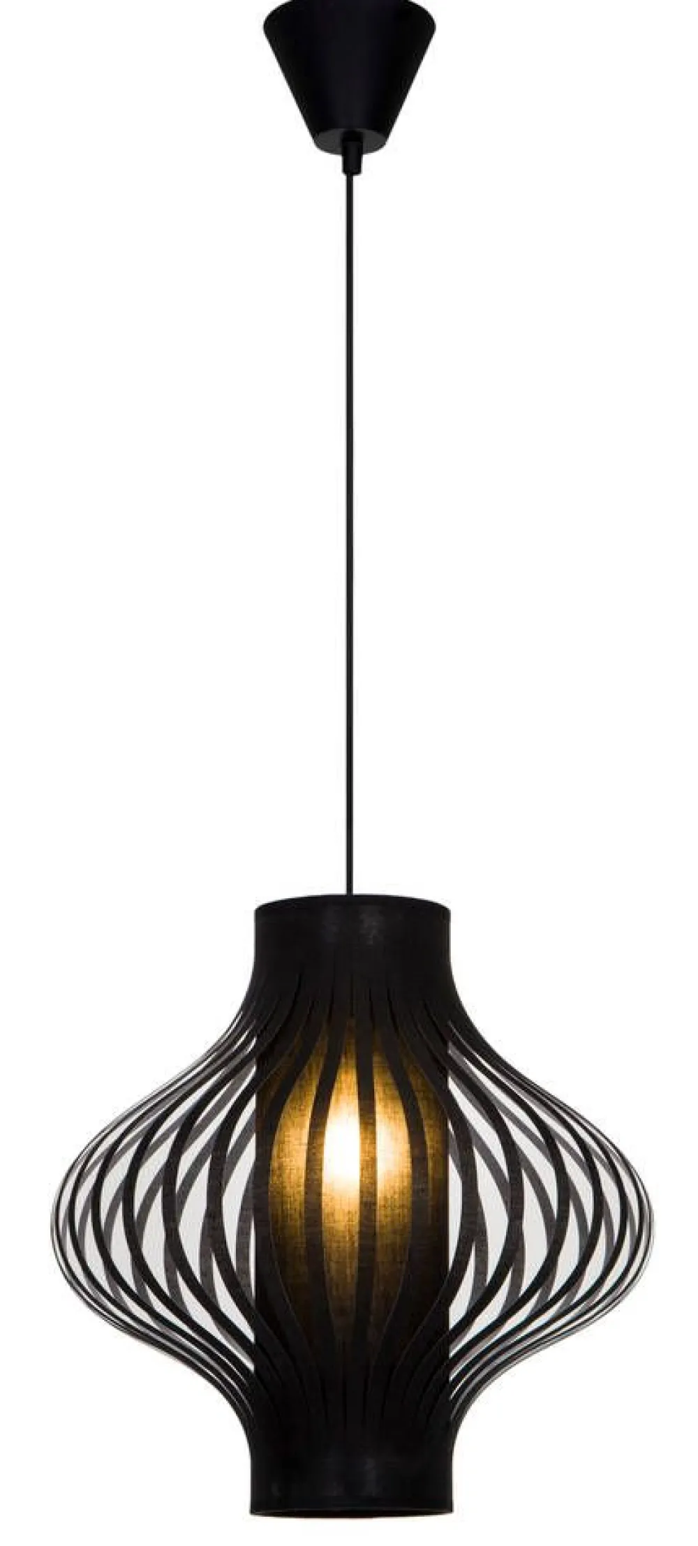 Trendikäs riippuvalaisin, jonka laminoitu varjostin antaa mukavan valon. Helppo asennus kattokoukkuun, mukana pistotu…