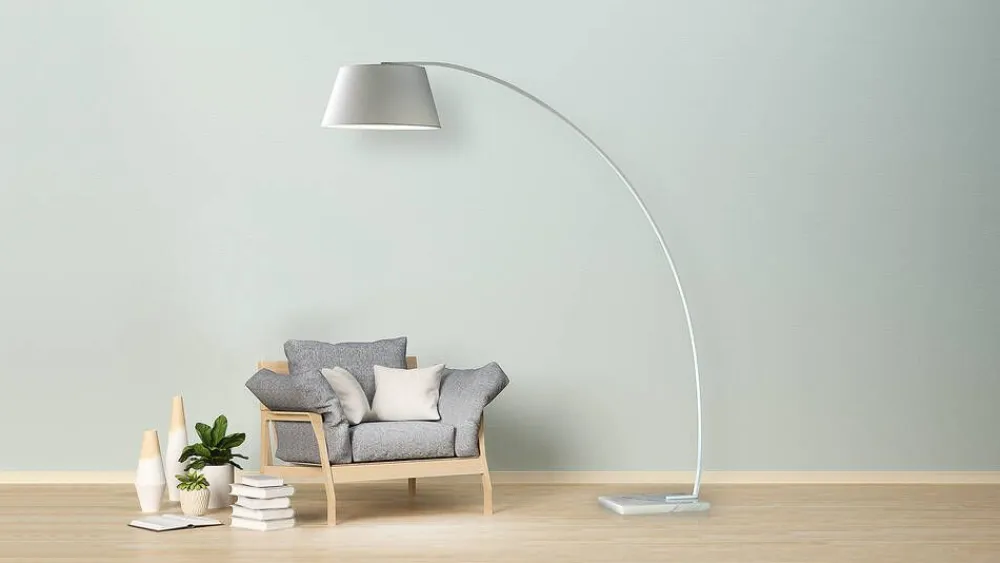 Suurta ja kaunista! Valkoinen runko, vaalea marmorijalusta ja pehmeä valkoinen sintsikankainen varjostin muodostavat ko…