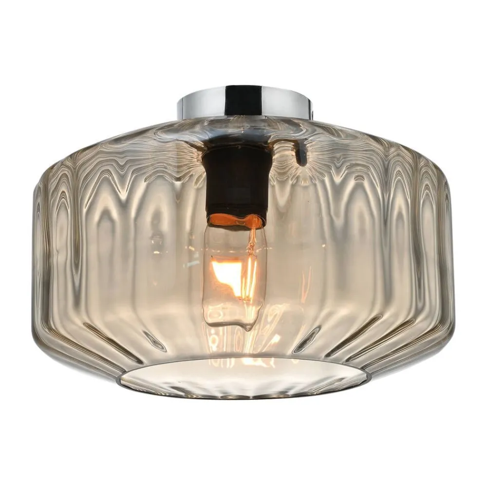 Cardigan on erilainen kattovalaisin. Siinä on ryppyinen ja 29 cm leveä konjakinvärisestä lasista valmistettu varjost…