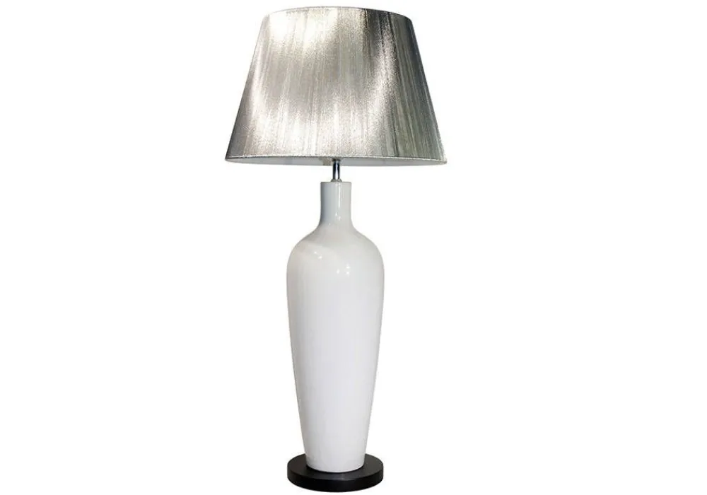 Korkea runko on keramiikkaa ja varjostin silkkilankaa, joka saa valon pehmenemään erityisen kauniisti. Näyttävä kok…
