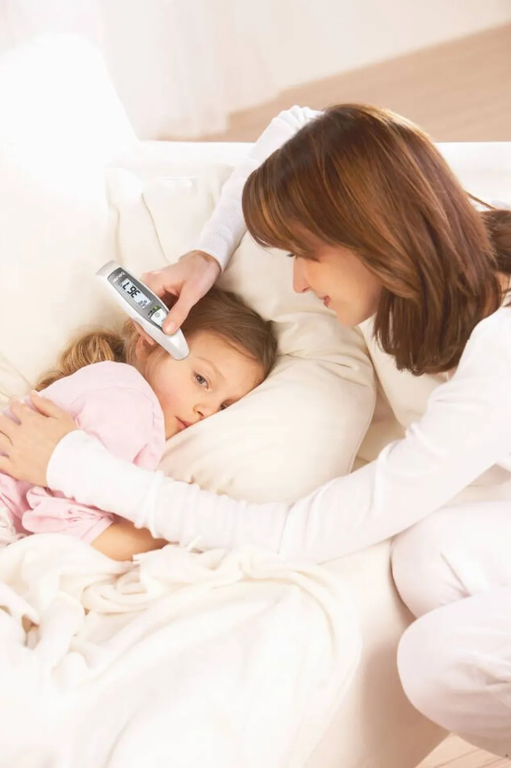 | Selkeän numeerisen näytön lisäksi vihreä ja punainen merkkivalo: Vihreä palaa kun mittaustulos on alle 38°C ja mittaustuloksen ylittäessä 38°C syttyy punainen merkkivalo |