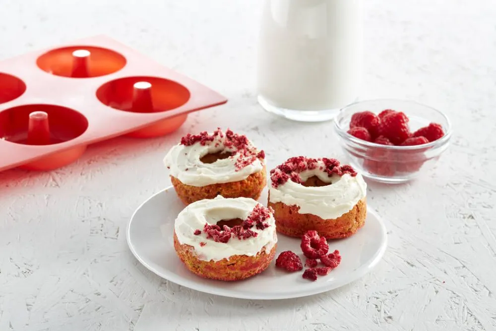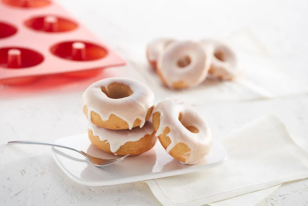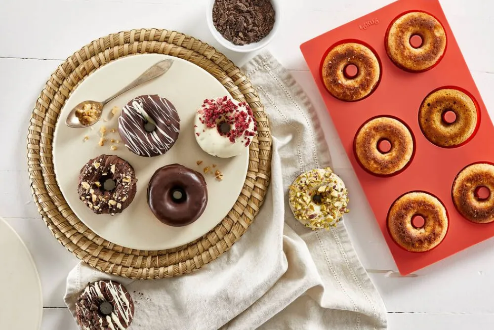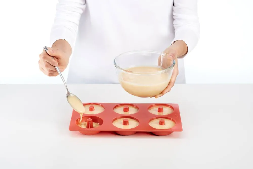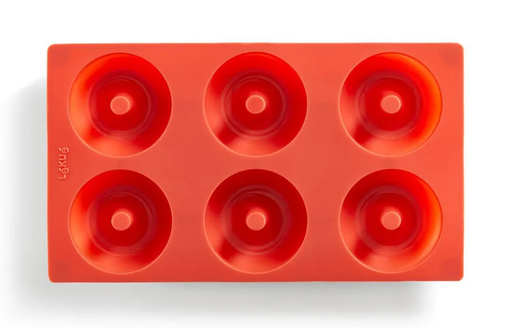| Yhden donitsin halkaisija on noin 75 mm ja korkeus 25 mm, vuoan tilavuus 540 ml (6 x 90 ml) |