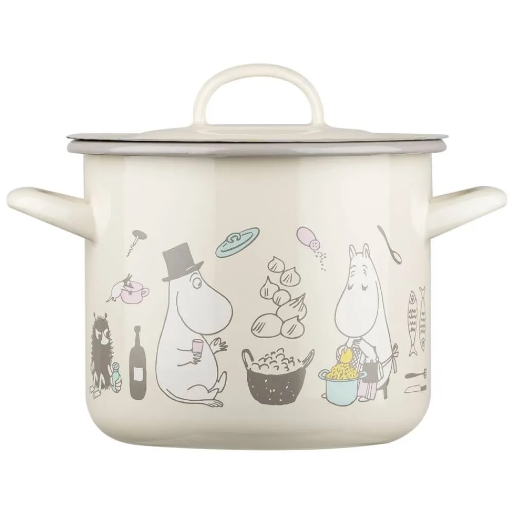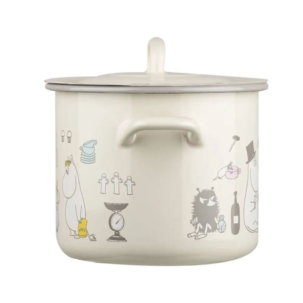 Muumi emalikattilan sydän on hiiliterästä, jonka päällä on kaksinkertainen emalointi. Voit käyttää kattilaa kai…