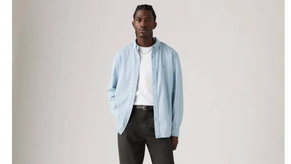 Vaalea farkkupaita nappikauluksella. Rinnassa on pieni brodeerattu Levi’s-tekstilogo.Lisää tietojaHoito-ohje:Vesipesu …