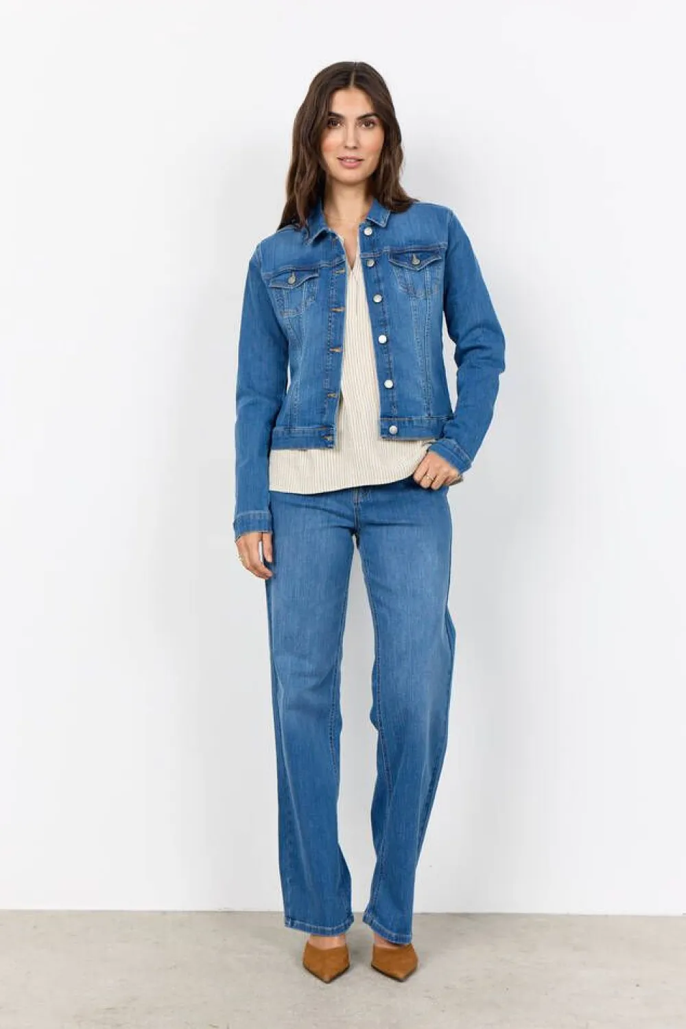 Ajattoman tyylikäs perusfarkkutakki hieman kulutetussa keskisinisessä pesussa. Helppo yhdistää erilaisiin asukokonai…