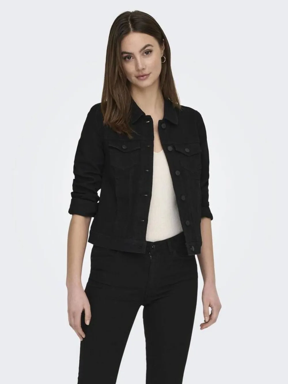 Klassinen farkkutakki läpällisillä rintataskuilla ja nappikiinnityksellä.Lisää tietoja