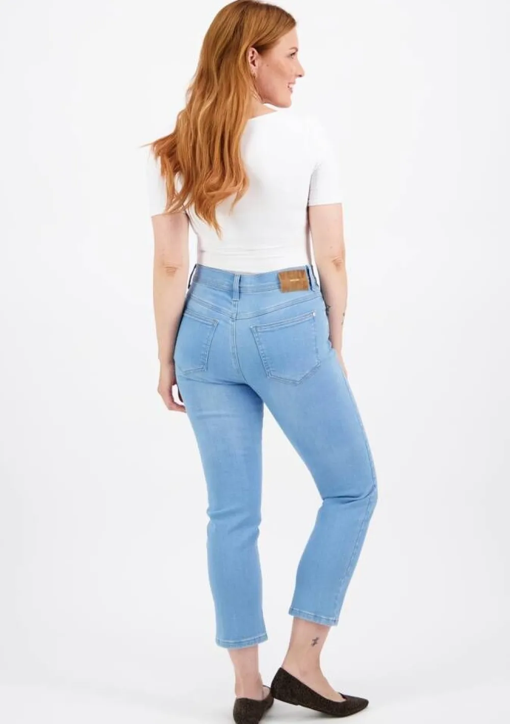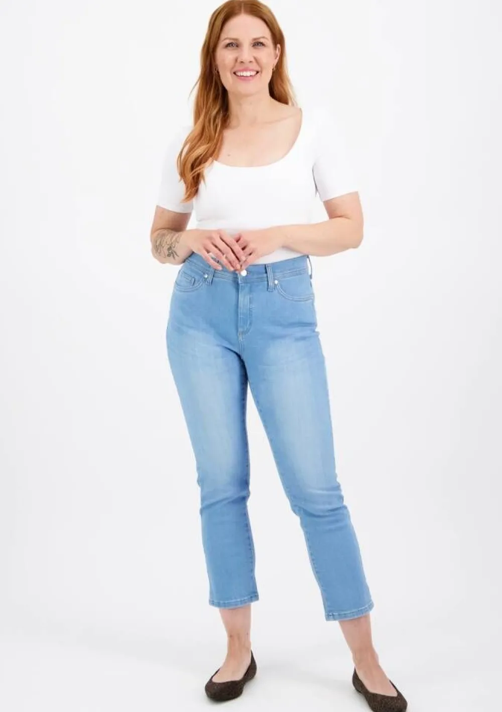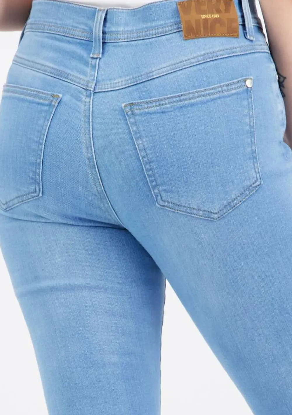 Raikkaat vaaleansiniset Cara cropped-vajaamittaiset farkut, joissa on miellyttävä korkea vyötärö. Slim fit malli.Li…