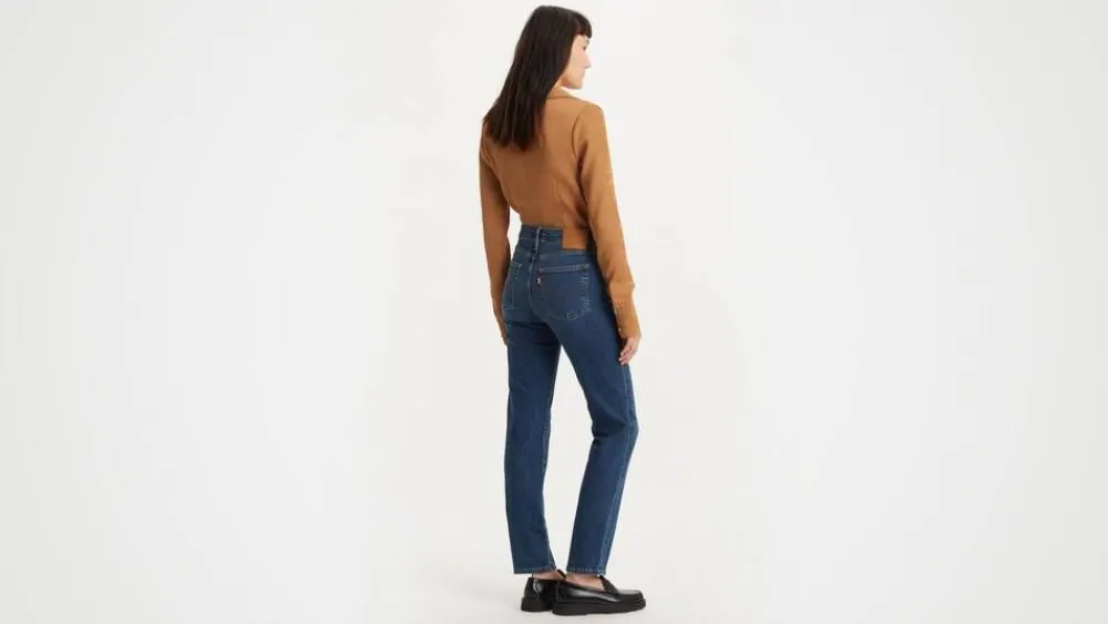 Korkeavyötäröiset farkut suorilla lahkeilla. Joustava materiaali lisää käyttömukavuutta.Lisää tietojaHoito-ohje…