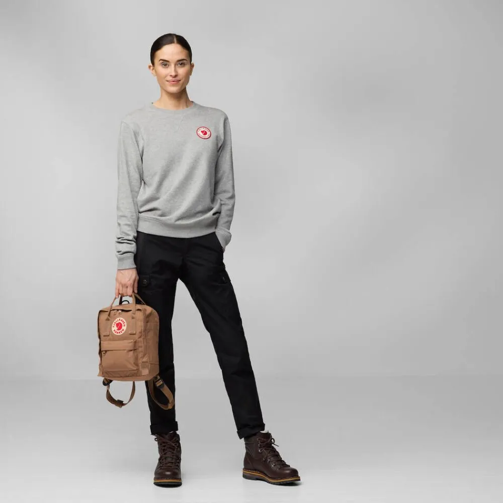 | Kantokahvat yläosassa ja kapeat, säädettävät olkahihnat. Edessä oleva logo on heijastava. Päälokeron sisäpuolella on myös nimilappu. |