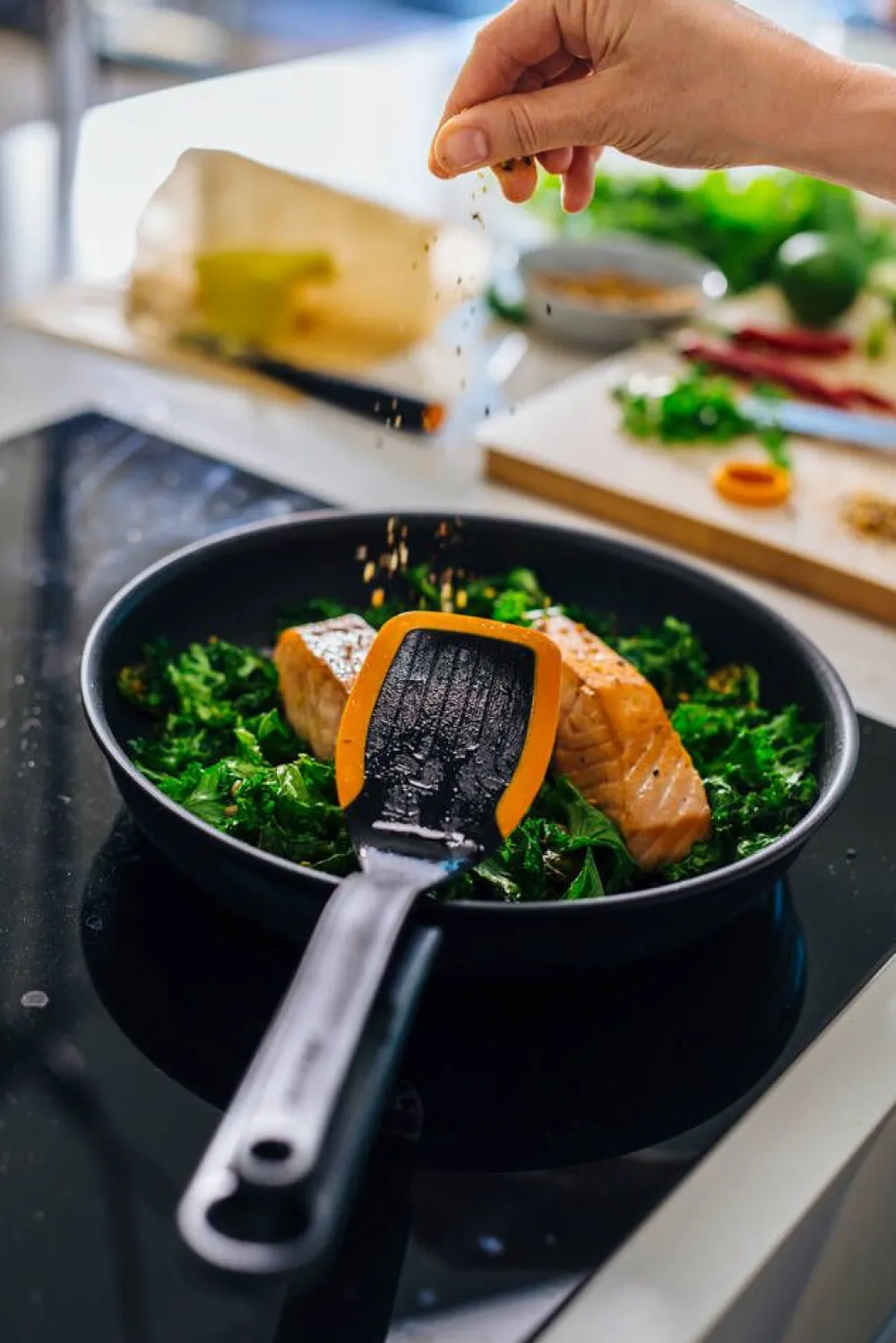 Functional Form paistolasta tekee paistamisesta helppoa. Silikonireuna ei naarmuta paistinpannun pinnoitetta. Kova, tuke…