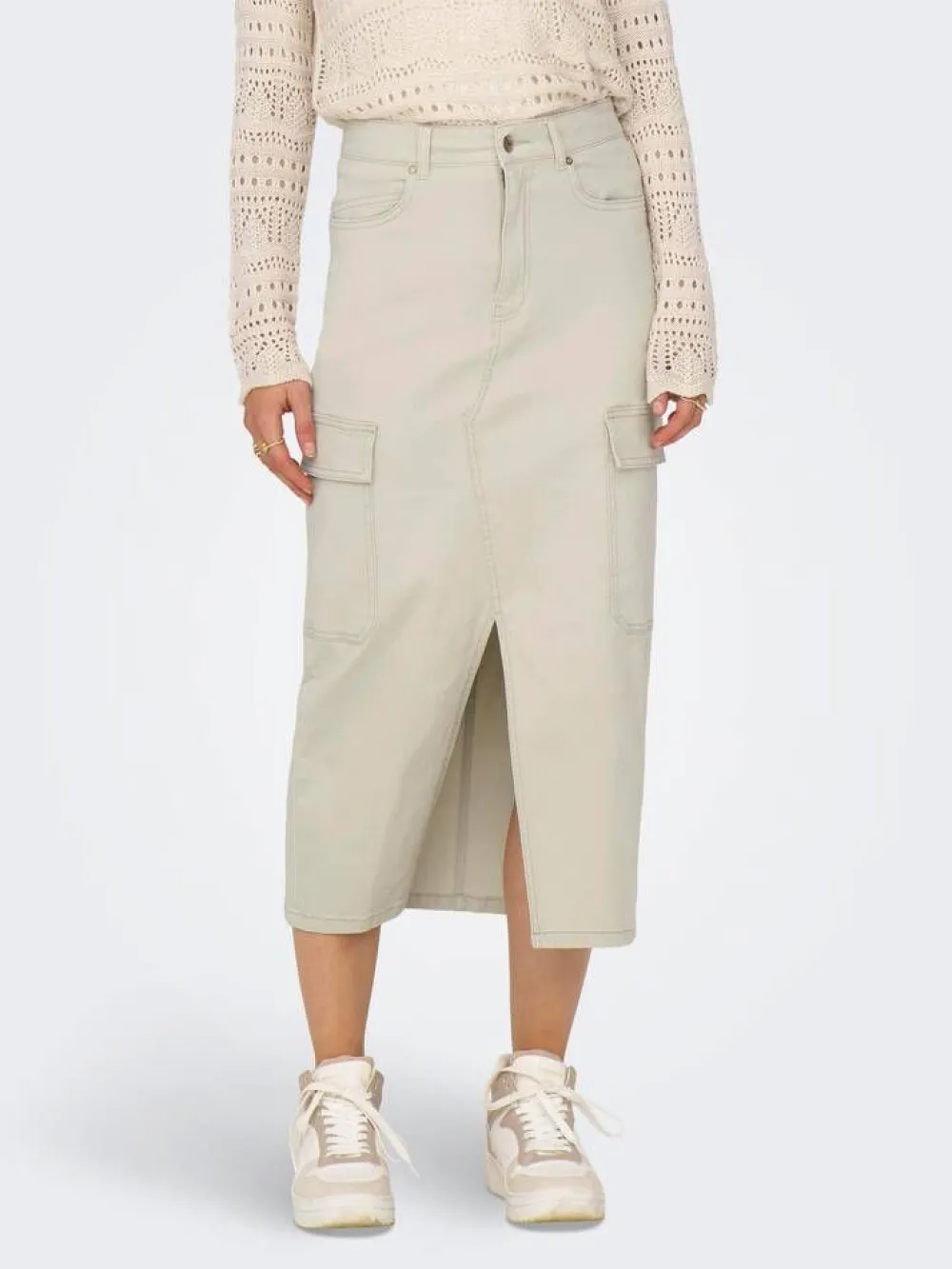 Pitkä ja kapea reisitaskuhame, jonka edessä on syvä keskihalkio.Lisää tietojaHoito-ohje:Vesipesu 30Kiinnitys:Vetoke…