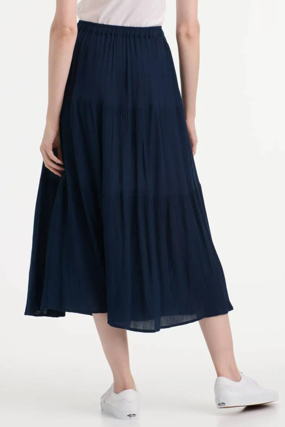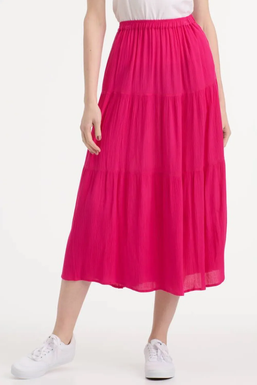 Ihanan kevyt yksivärinen hame kätevillä sivutaskuilla. Helmassa koristeelliset poikkisaumat ja vyötäröllä joustav…