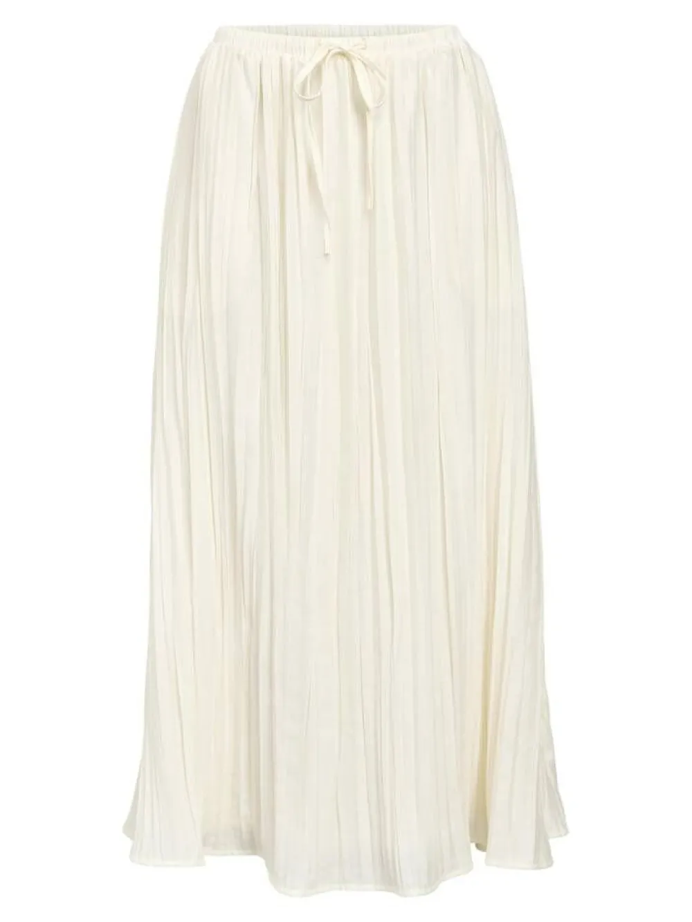 Ajattoman tyylikäs midimittainen hame kevyesti vekitetyllä kankaalla. Mallissa on joustava vyötärö ja solmittava vy…