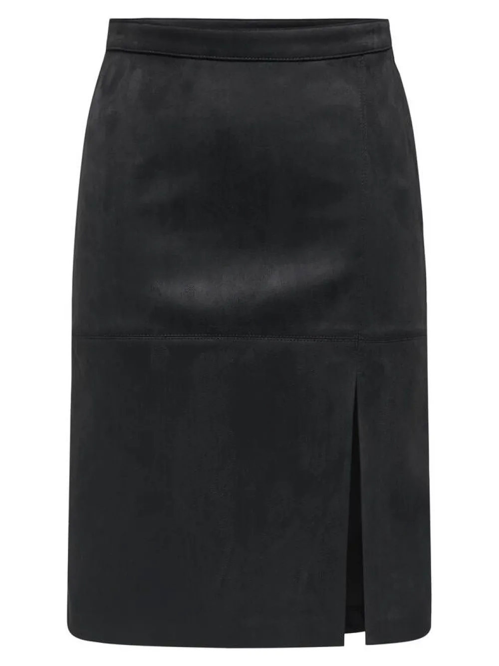 Tyylikäs keskipitkä ja pehmeäpintainen hame tekomokkaa. Edessä oleva halkio lisää käyttömukavuutta.Lisää tieto…