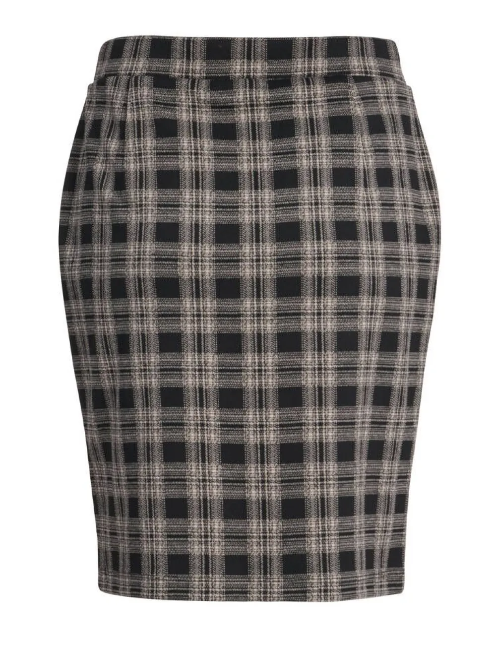 Tyylikäs ruututrikoohame joustavalla kuminauhavyötäröllä. Näyttävän kokonaisuuden saat yhdistämällä hameen tu…