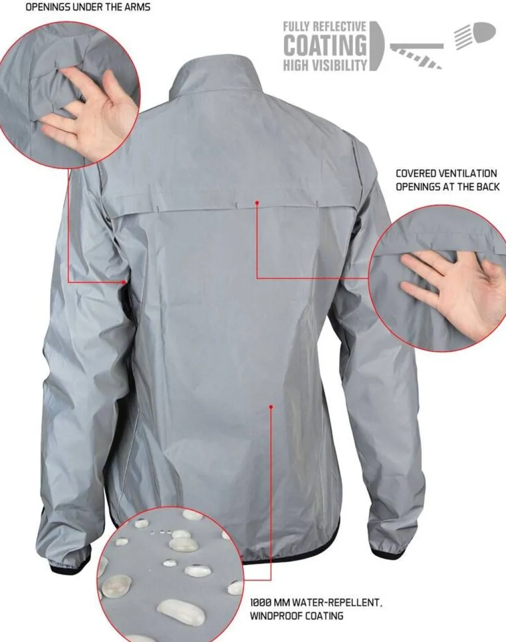 100% polyester. Sisäosa 100% polyester verkko. 1000 mm vettähylkivä. Tuulisuojakäsittely. Täysin heijastava takki. …