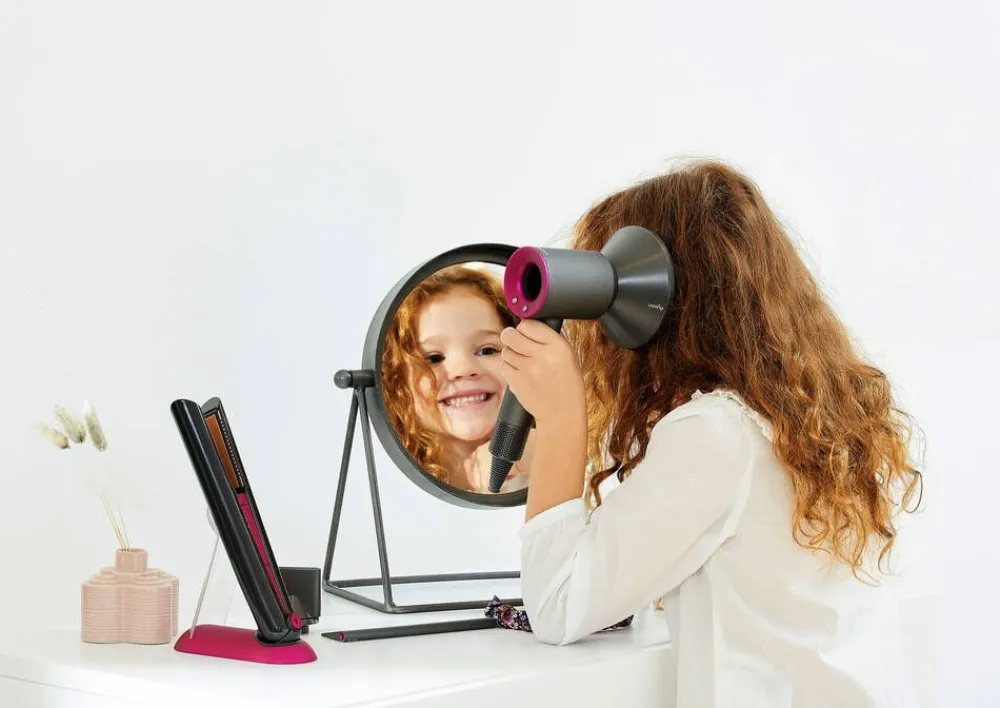 Upea Dyson-hiustenmuotoiluleikkisetti kampaamoleikkeihin! Setti sisältää Dyson Supersonic -hiustenkuivaajan, joka puh…