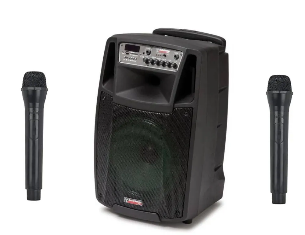 | Kaksi langatonta käsimikrofonia lupavapailla, ilmaisilla taajuuksilla |