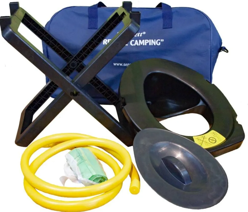 | Yhden myyntipakkauksen sisältö:Erotteleva käymälä Rescue Camping 25 – 10 kpl Separett biosäkkejä – Virtsanpoistoletku – Käymälän kantolaukku |