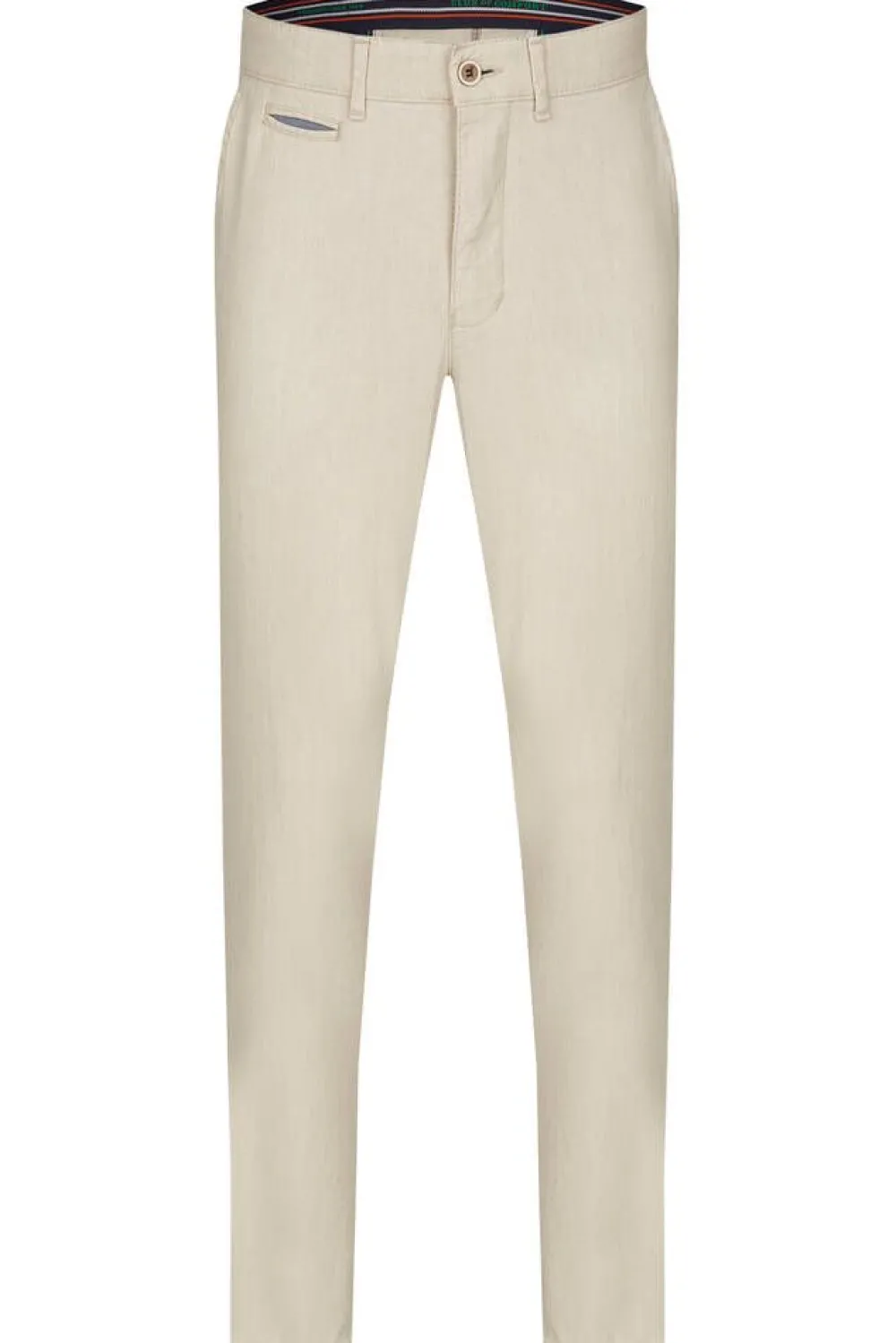 Miesten yksiväriset pellavasekoitehousut etu- ja takataskuilla. Joustava materiaali lisää käyttömukavuutta.Lisää …
