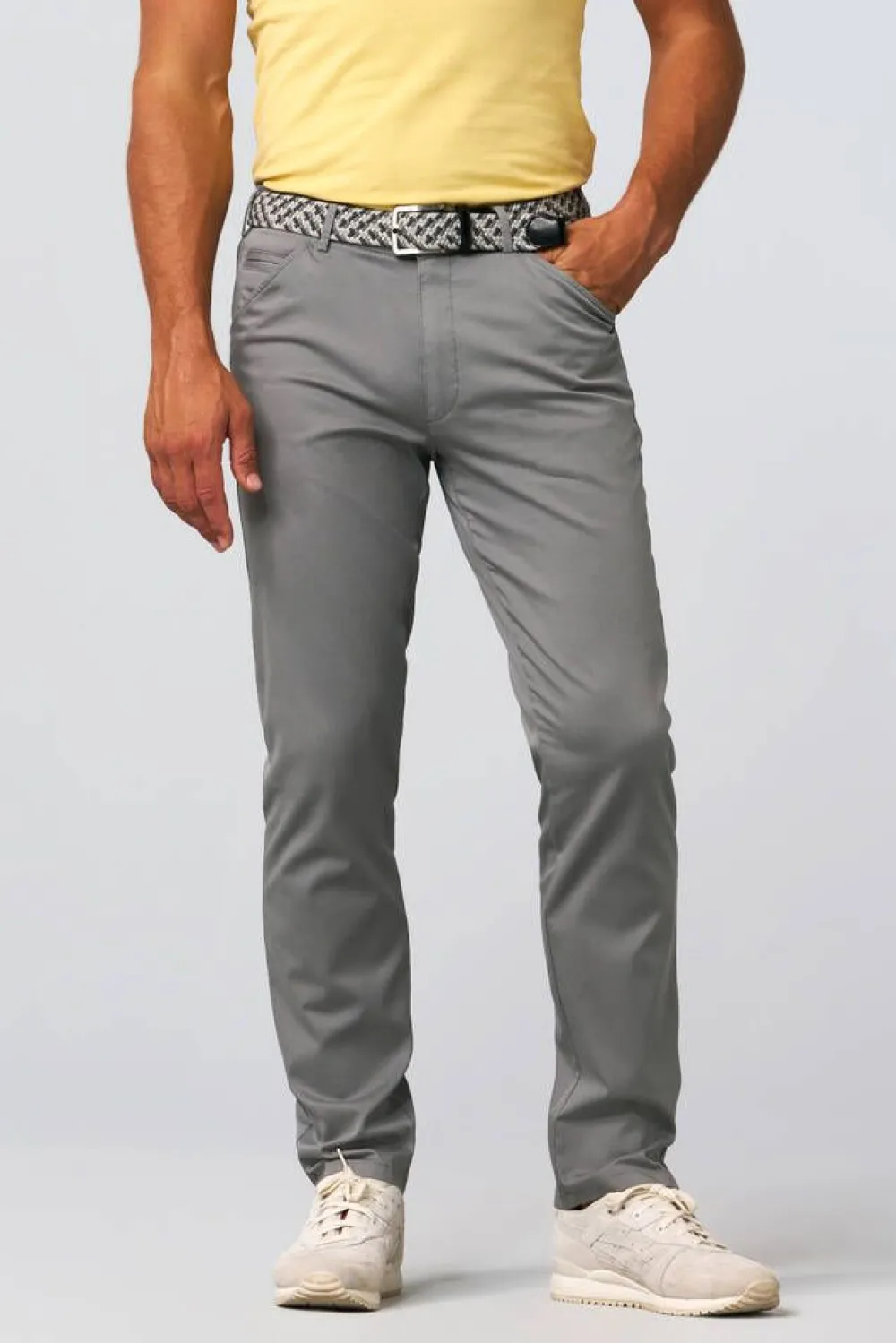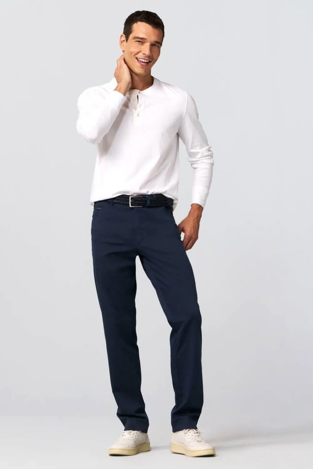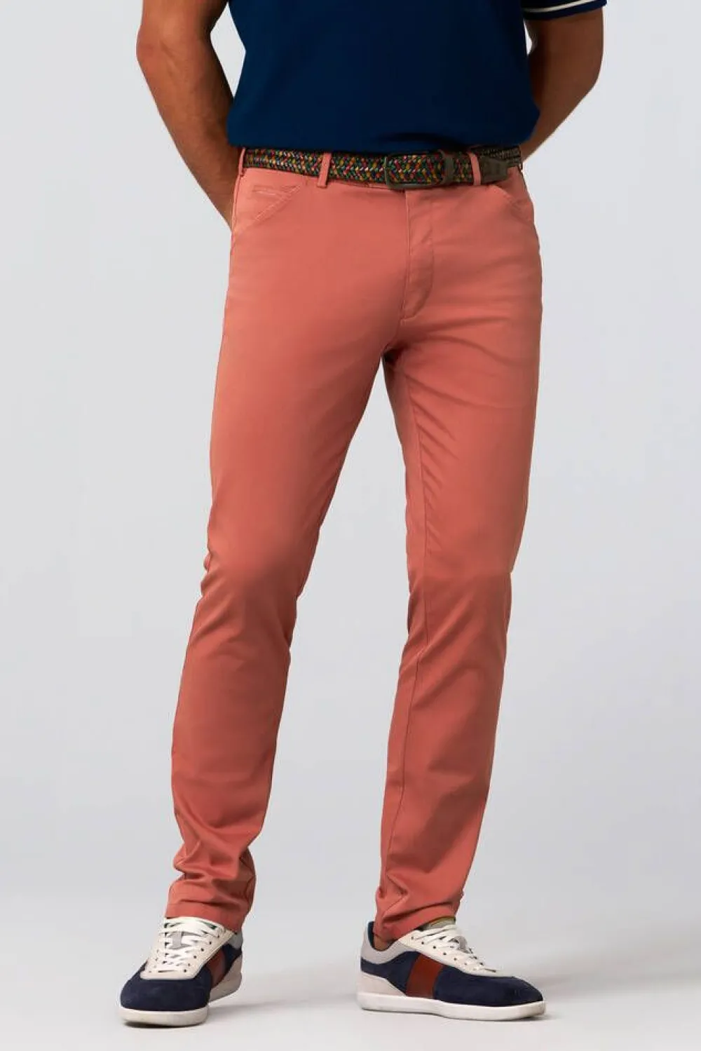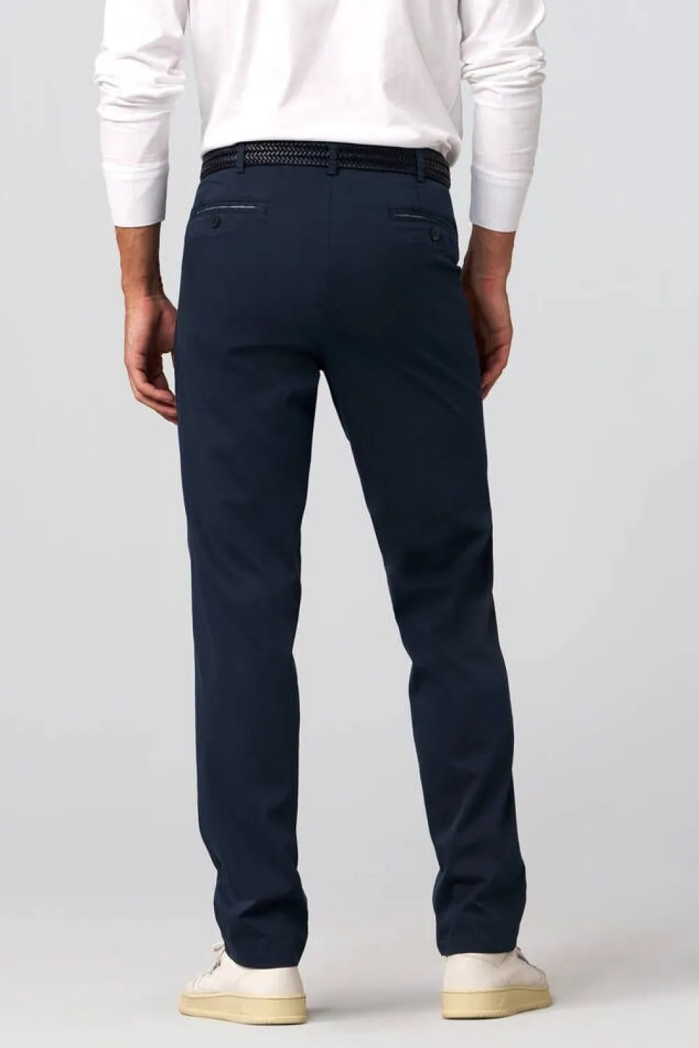 Tyylikkäät housut, jotka on valmistettu korkealaatuisesta luomupuuvillasta. Vasemman taskun sisällä on kätevä turv…