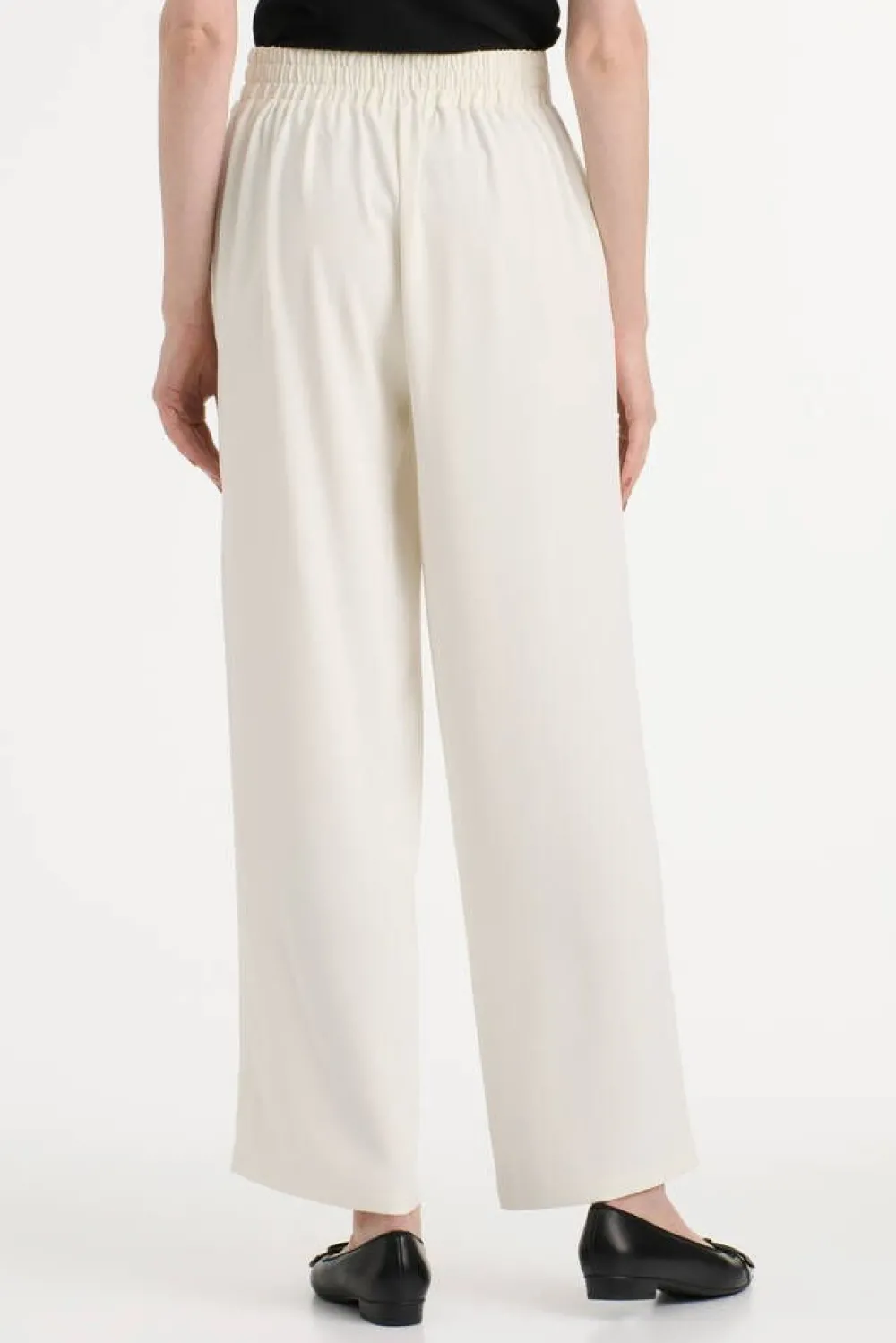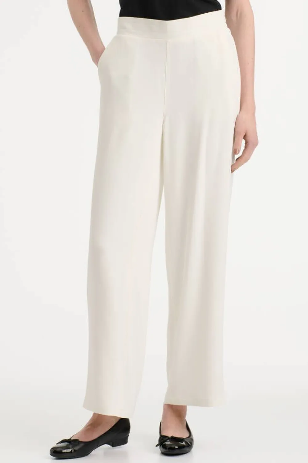 Siistit suorat housut kauniisti laskeutuvaa kangasta. Housuissa käytännölliset sivutaskut ja vyötärön takapuolella…