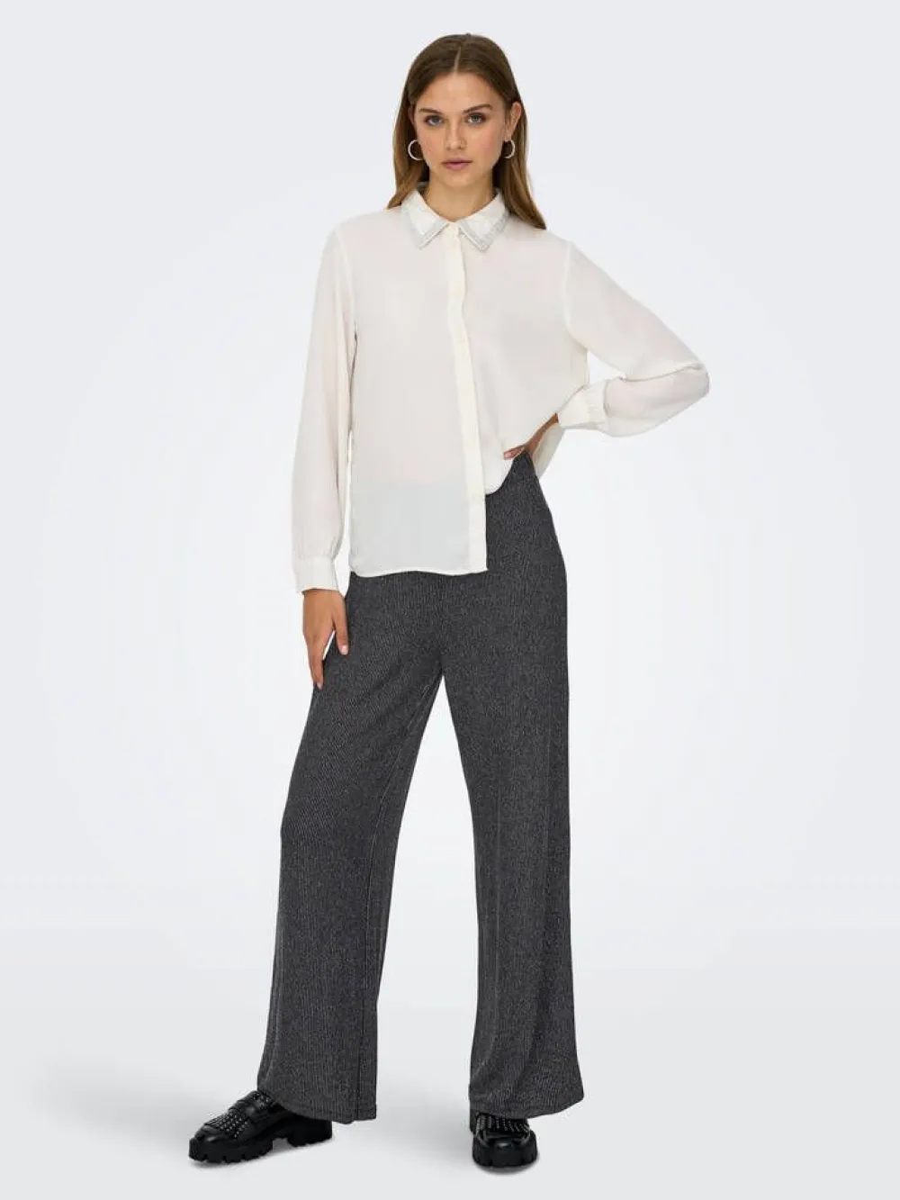 Näyttävät ja mukavat kimaltavat naisten housut, joissa joustava vyötärö ja leveät lahkeet tuovat rentoa eleganssi…