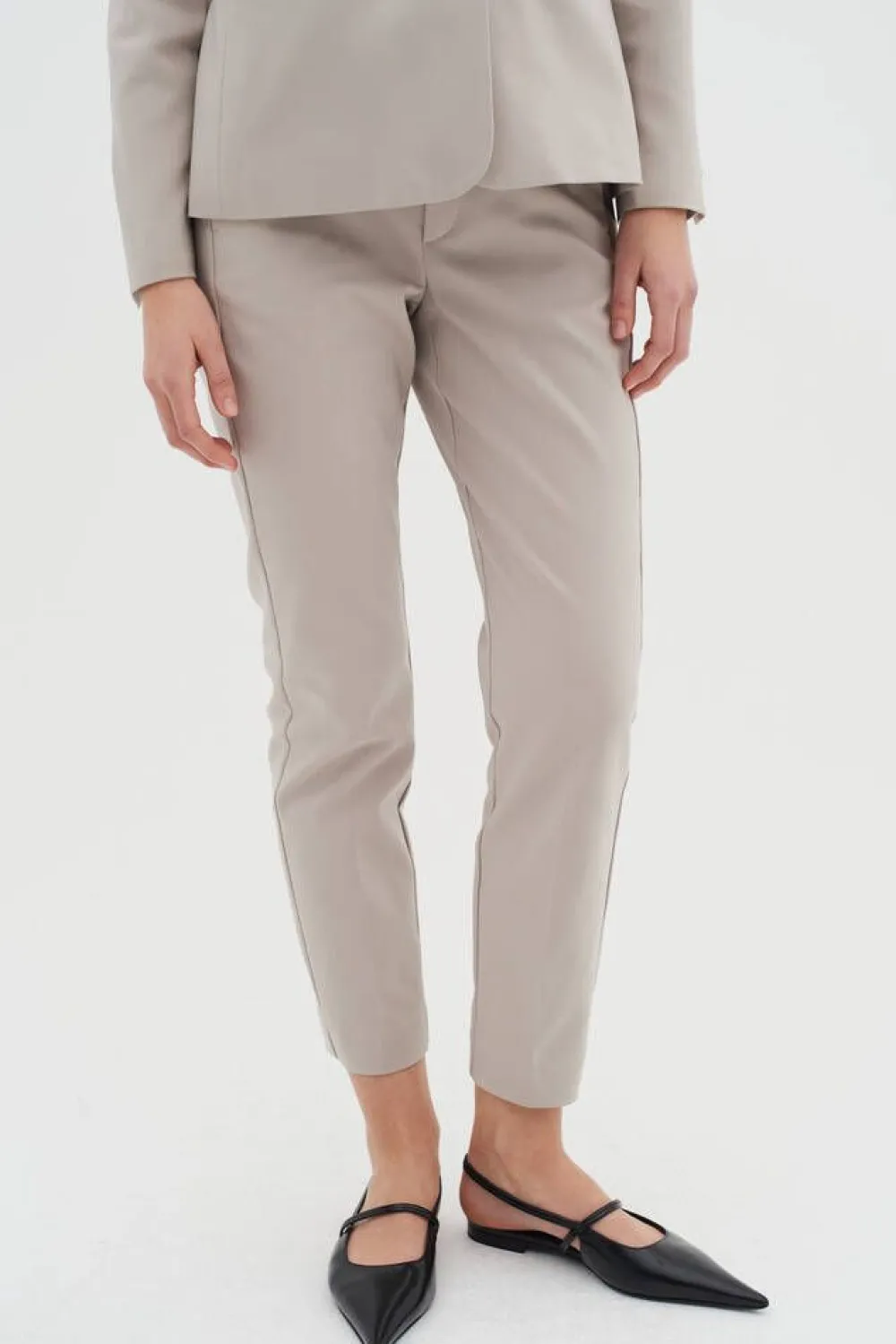 Vajaamittaiset housut joustavalla osittaisella kuminauhavyötäröllä. Juhlavan kokonaisuuden saat yhdistämällä hous…