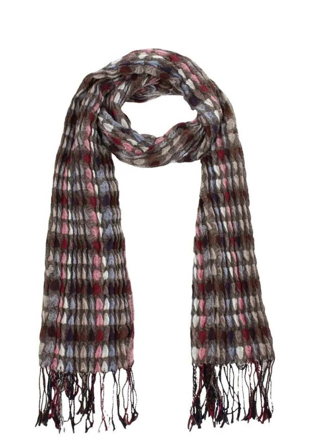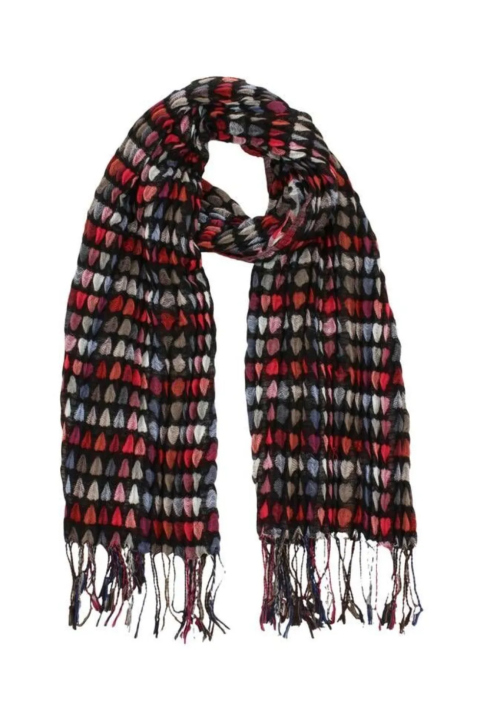 Kevyt ja eläväpintainen monivärinen huivi rypytetyllä struktuurilla.Lisää tietojaKoko: 65 x 180 cmMateriaali:93% p…