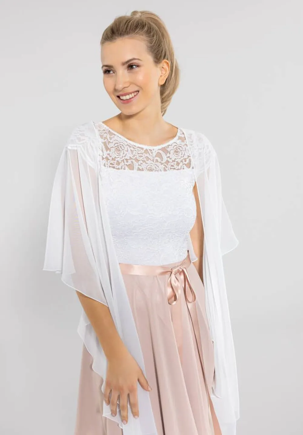 Swingin muotoon leikattu juhlahuivi viimeistelee juhla-asusi. Kevyt ja laskeutuva sifonkihuivi.