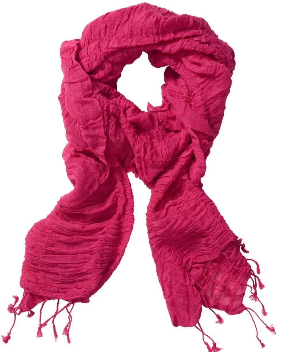 Yksivärinen puuvillahuivi rypytetyllä pinnalla. Huivin molemmissa päissä on hapsukoristeet.Lisää tietojaMateriaali…
