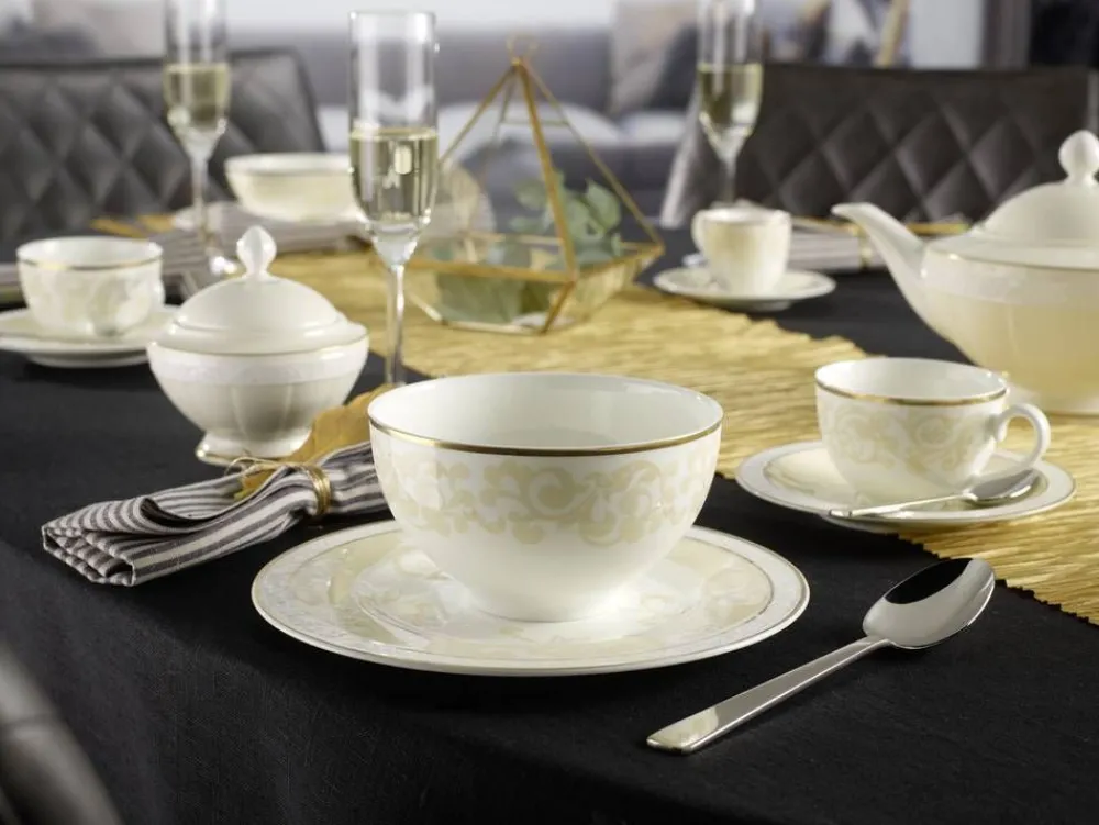 Ivoire-astiasarja on koristeltu köynnöksin ja kultaisin yksityiskohdin. Astiasto on valmistettu kestävästä ja kauni…