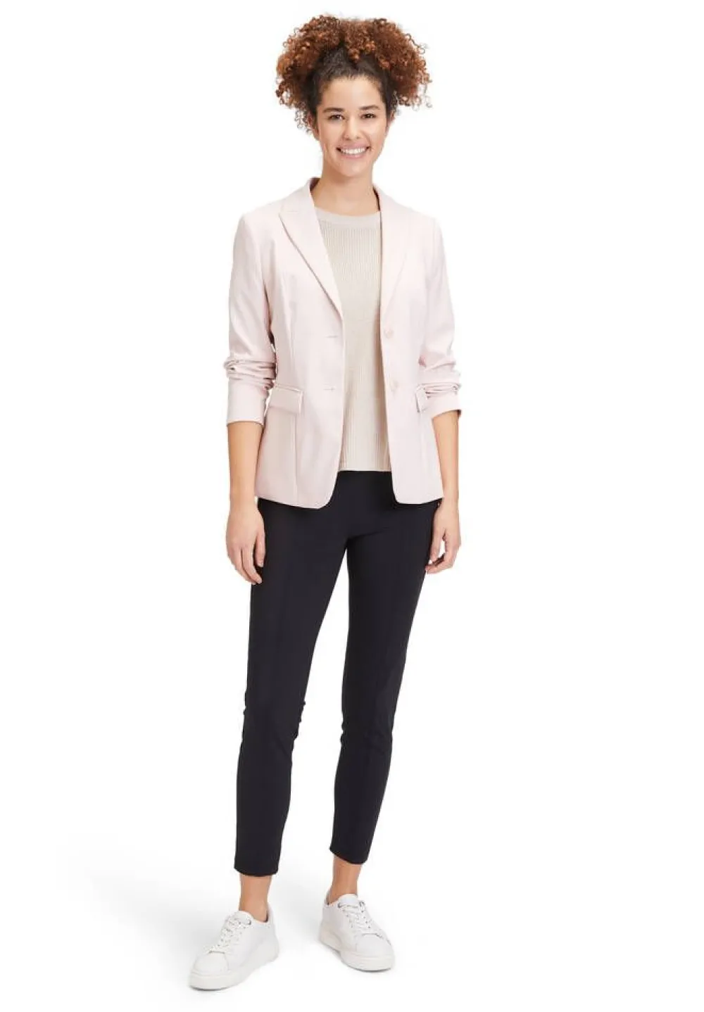Vaalea perusjakku kahdella napilla. Etupuolella on kätevät läppätaskut.Lisää tietojaKiinnitys:NappiMateriaali:86% …