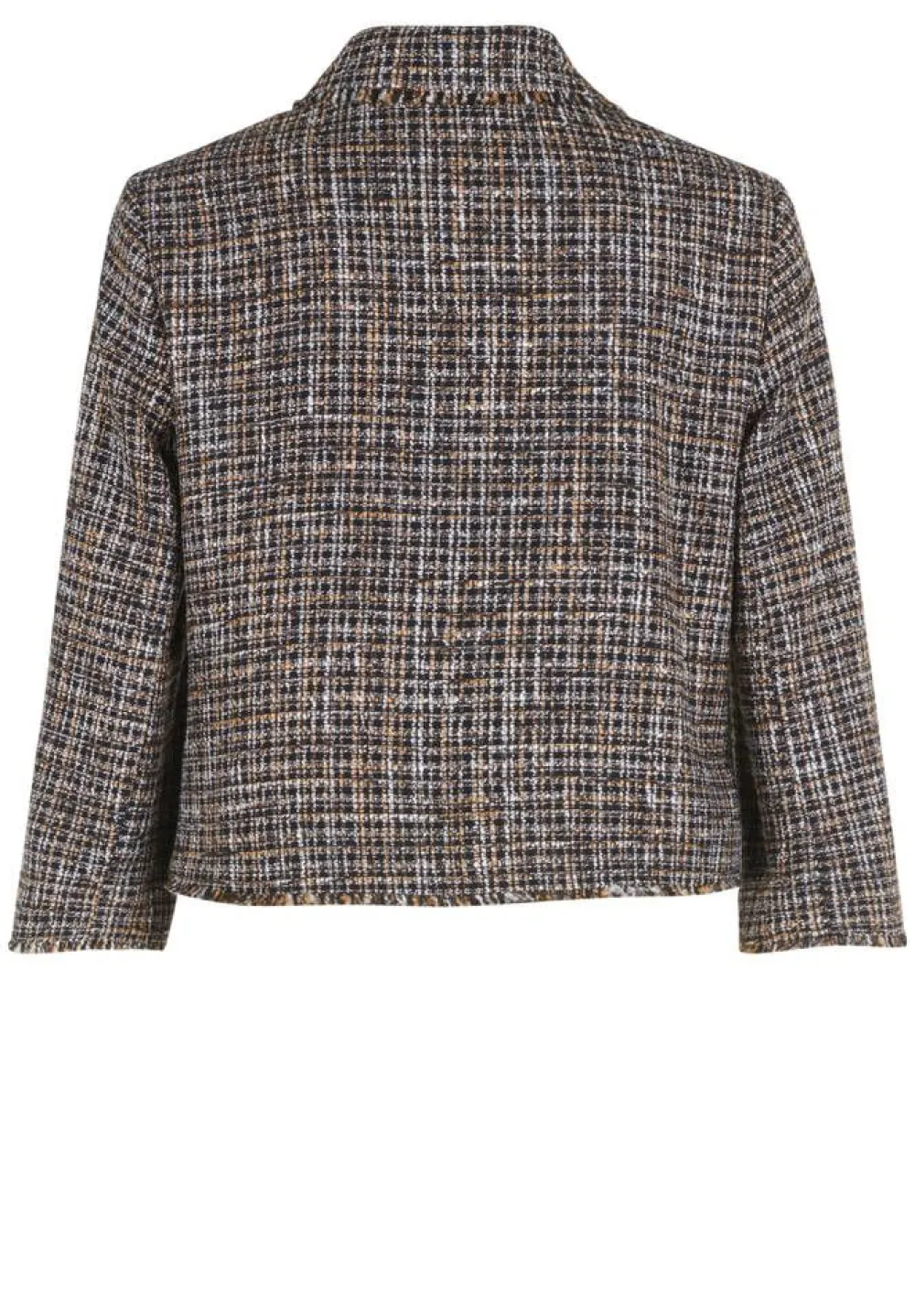 Ajattoman tyylikäs tiheällä ruutukuosilla koristettu napitettava takki. Malli on lyhyt ja myös vajaamittaiset hihat …