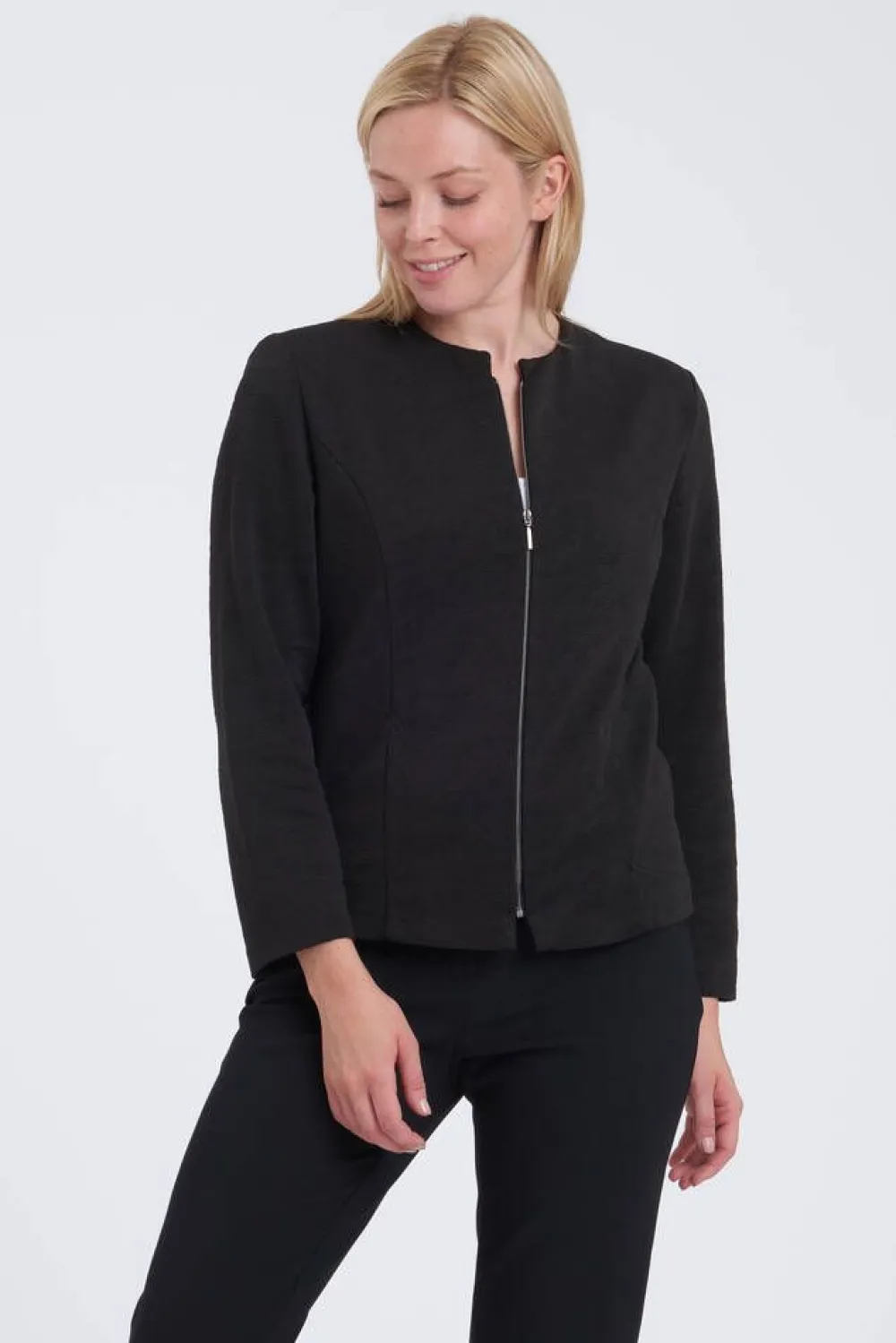 Yksivärinen jakku kätevällä vetoketjukiinnityksellä. Struktuuripintaisessa jakussa on pitkät hihat ja edessä pien…
