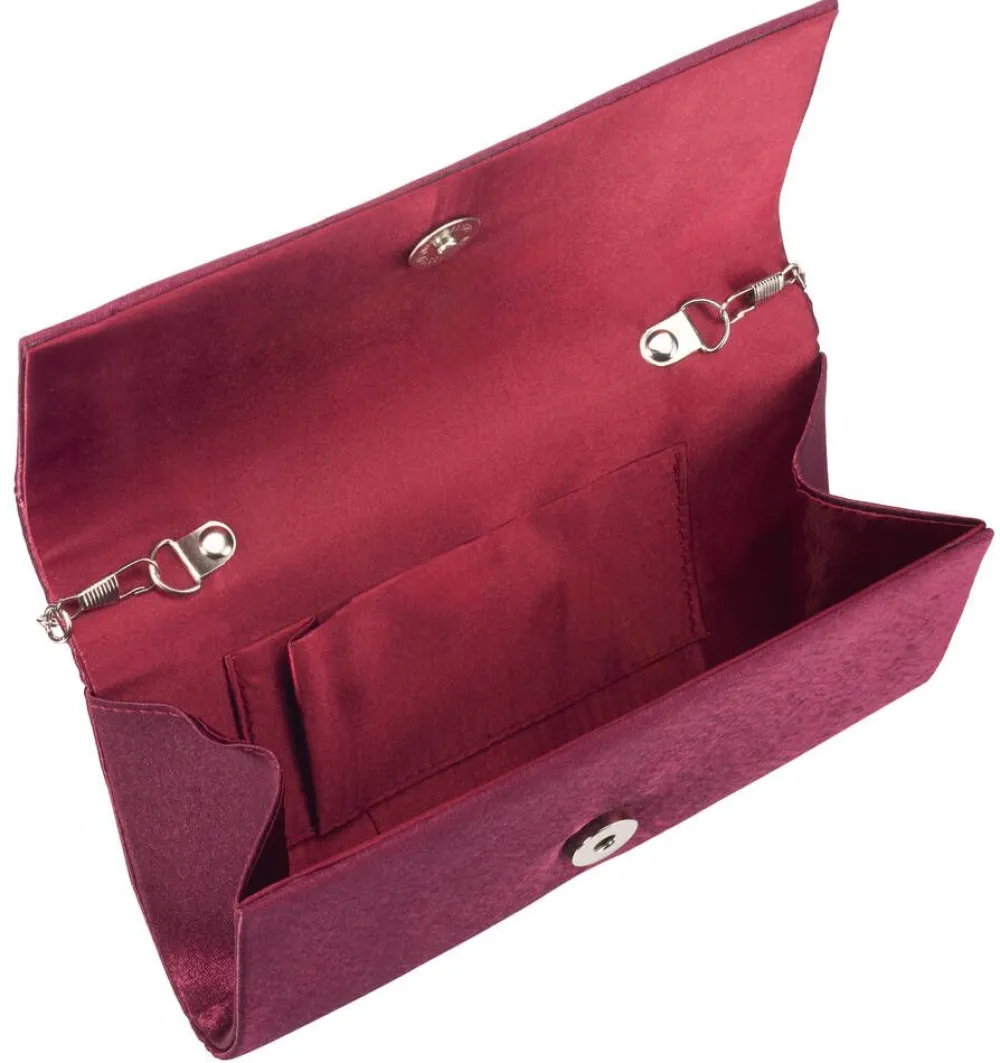 Klassikko kirjekuorimallinen juhlalaukku hienostuneella satiinipinnalla. Laukussa on irrotettava pitkä ketjuhihna ja ma…