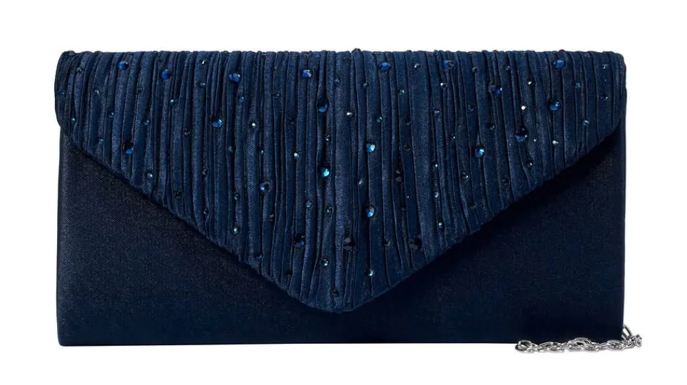 Kaunis satiinipintainen juhlalaukku timanttisomisteilla. Laukussa on siro irrotettava ketjuolkain ja magneettinen nappik…