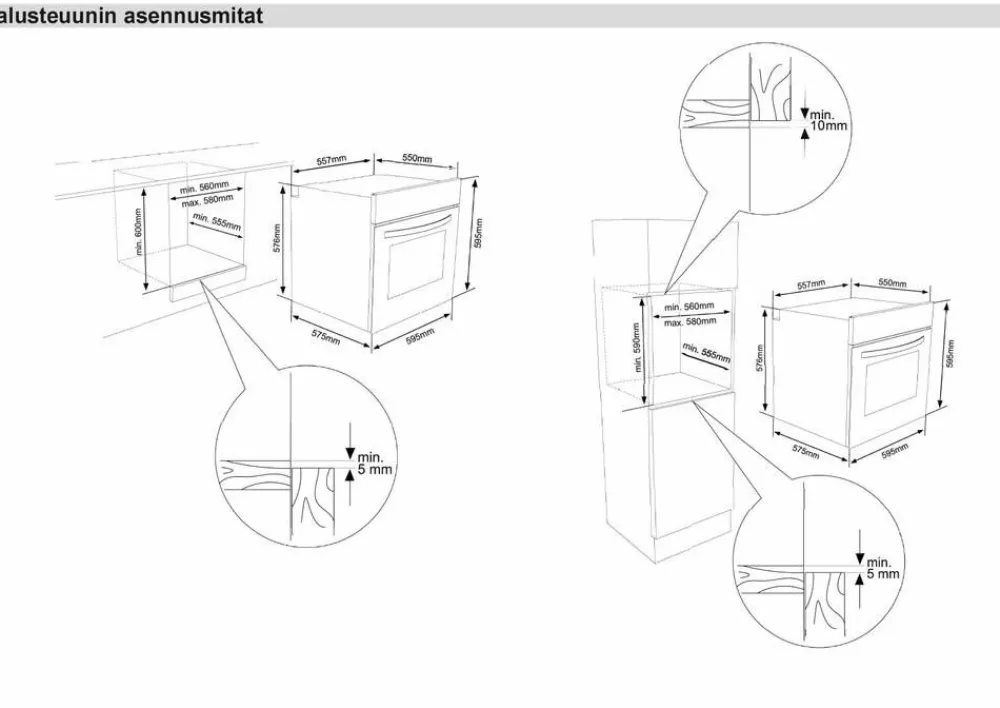 | Ylälämpö (W) 1200, Alalämpö 1100 (W). Yhteensä ylä+alalämpö 2300 (W). Kiertoilma (W) 2000. Sulatus (W) 23. Grillin teho (W) 1400. Valo (W) 25. |