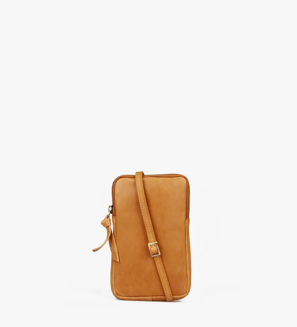 Nahkainen kännykkälaukku kapealla olkahihnalla.Lisää tietojaKiinnitys:VetoketjuMateriaali:NahkaSäädettävä olkahi…