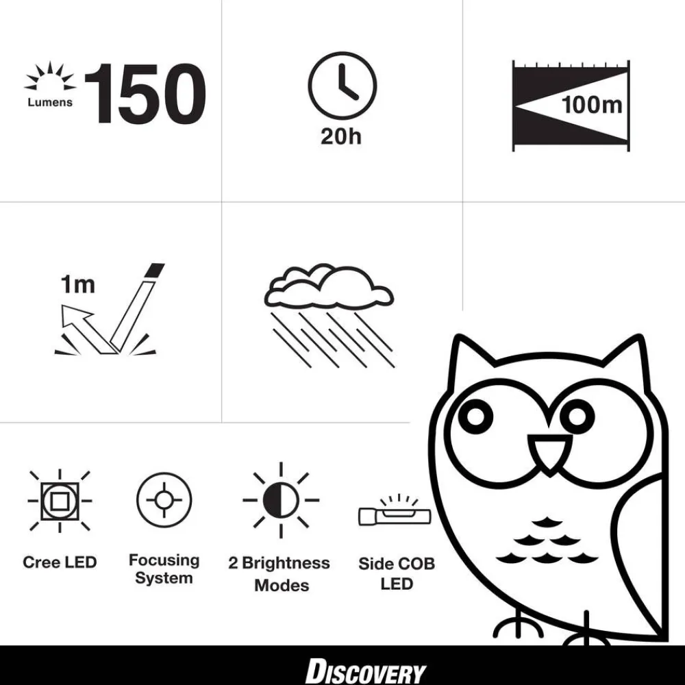 | Yhden myyntipakkauksen sisältö:Käsivalaisin 150lm, 2 x AA paristot, klipsi |