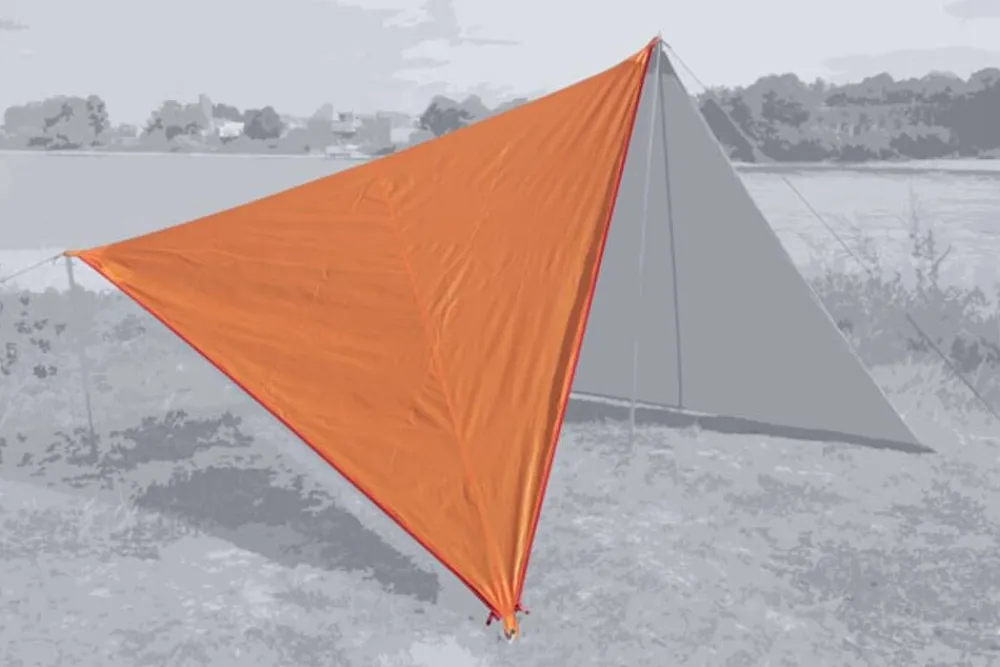 Patentoitu 250x250x250 cm kokoinen katoskangas, jossa vetoketju jokaisella kantilla, joten kolmion voi liittää yhteen …