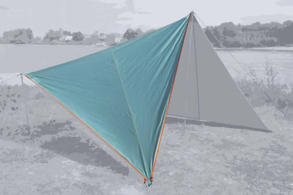 Patentoitu 250x250x250 cm kokoinen katoskangas, jossa vetoketju jokaisella kantilla, joten kolmion voi liittää yhteen …