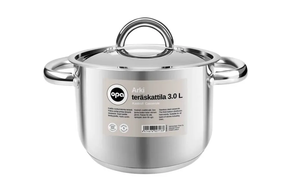 Opa Arki kattila 3,0 L on valmistettu ruostumattomasta teräksestä. Reilun kokoisessa kattilassa valmistuu perunat, pas…