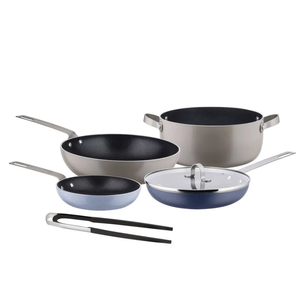 Alessi Tama 5-osainen kattilasetti. Setti sisältää 4,2 litraisen kaksikahvasen kattilan (GIA101/24) sekä siihen sopi…