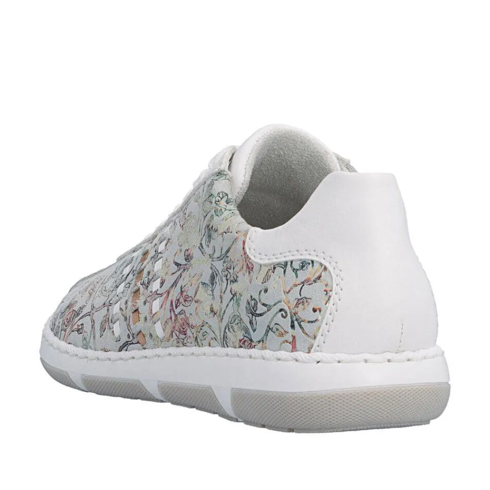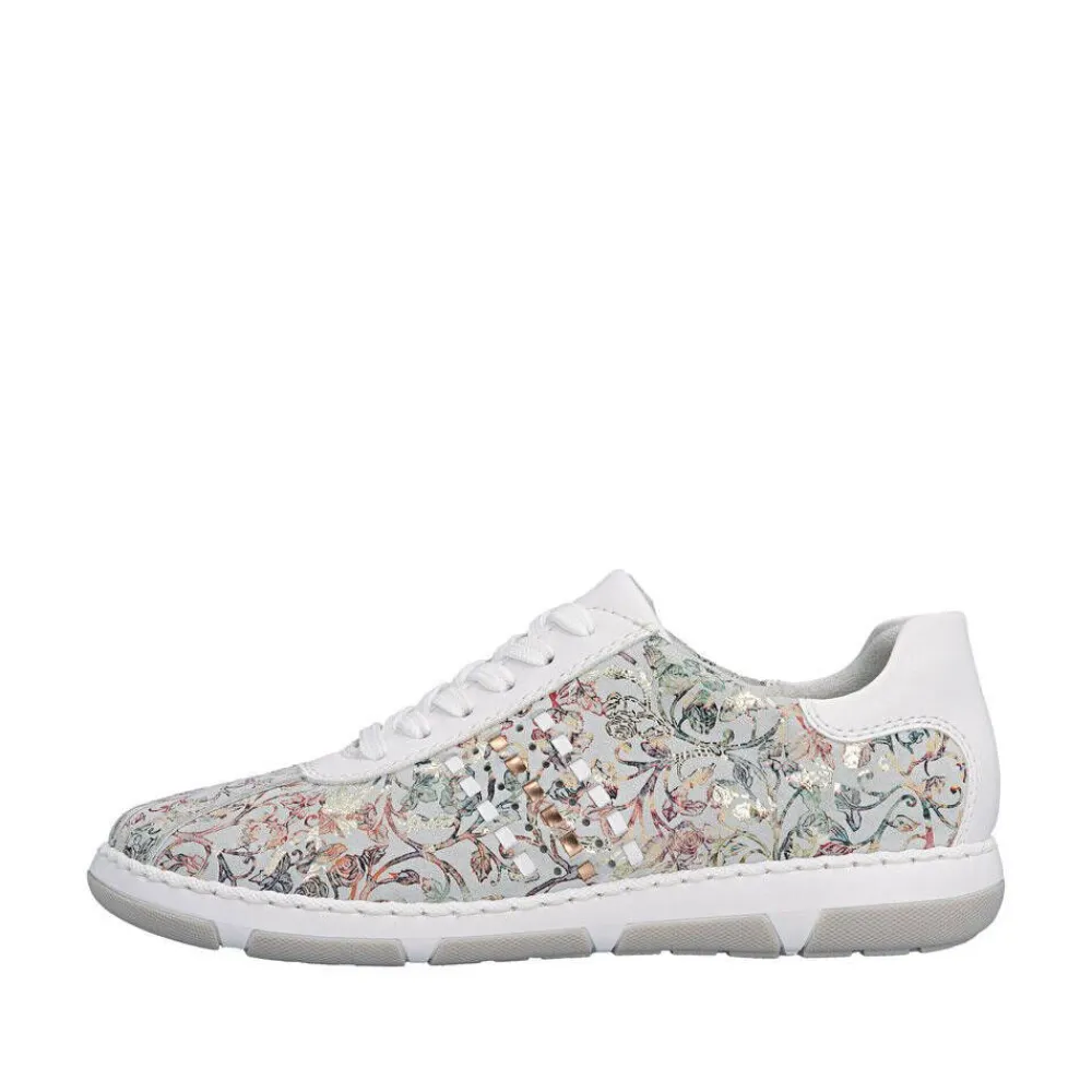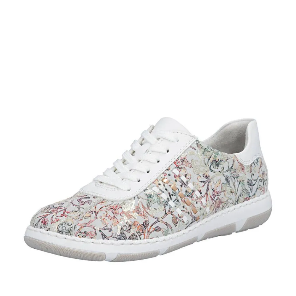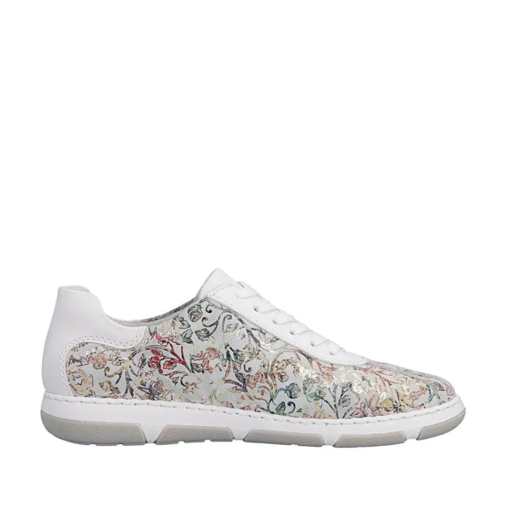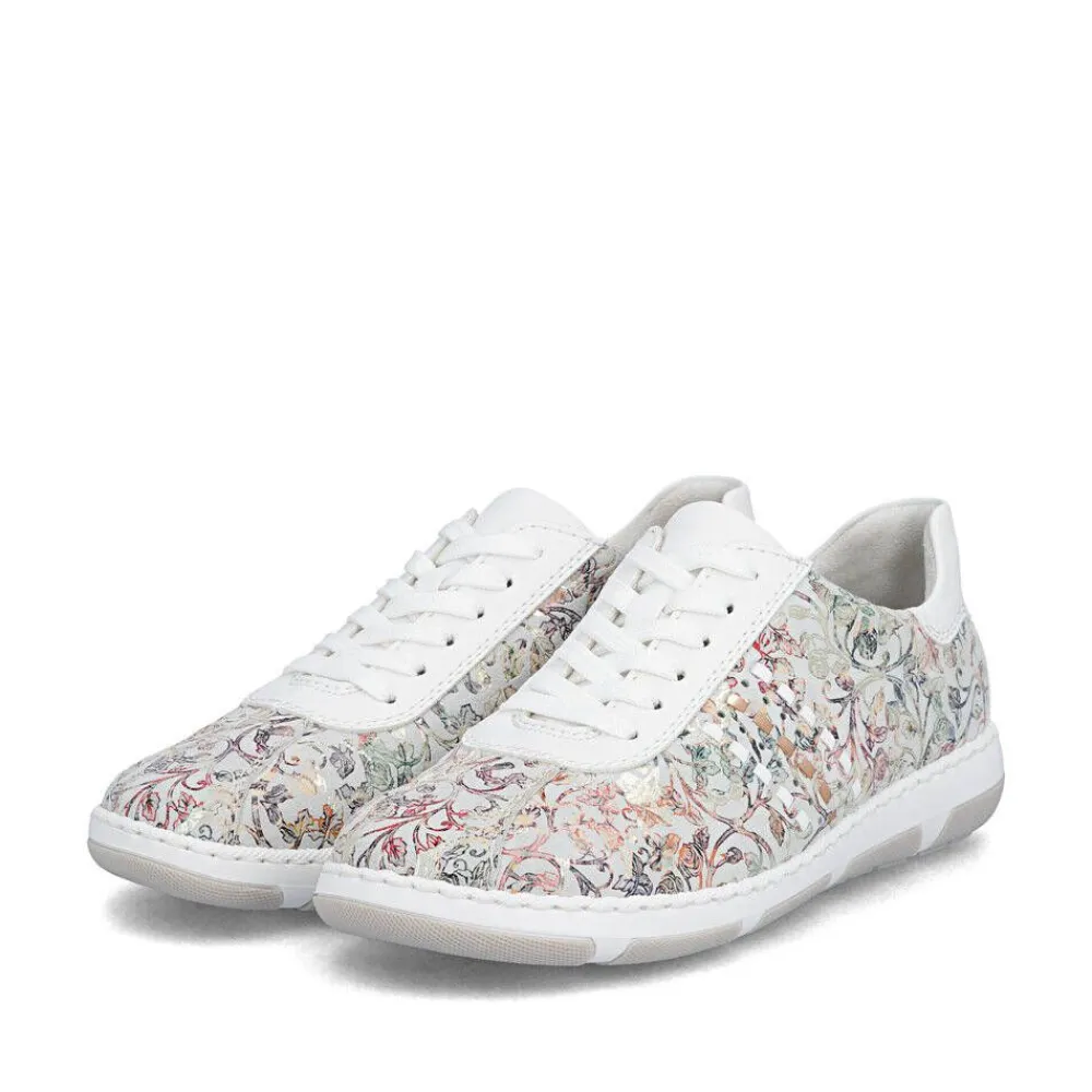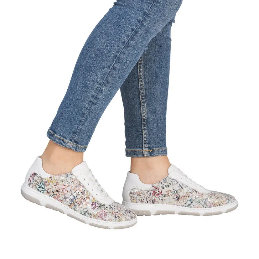 Tyylikkäät kävelykengät printatulla monivärisellä mokkanahkapäällisellä. Päällinen on ommeltu pohjaan kestäv…