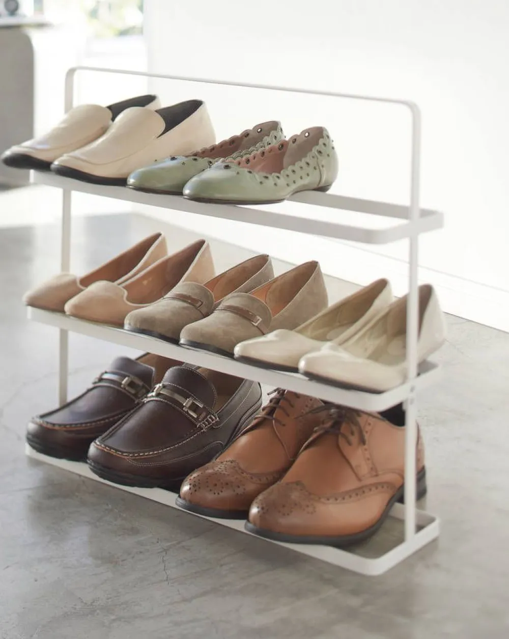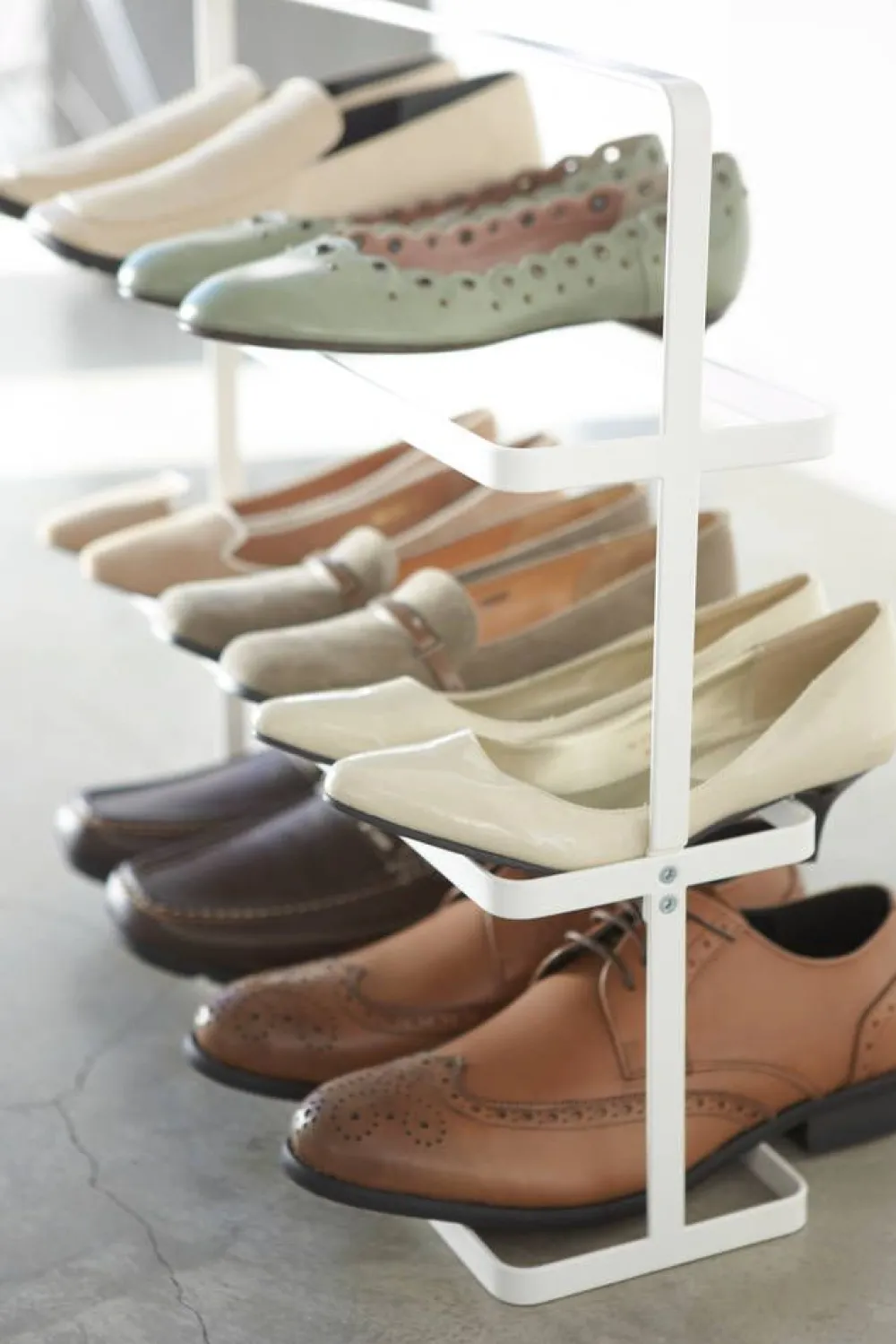 Tower-sarjan sirorakenteinen ja minimalistinen kenkäteline sopii monenlaiseen sisustustyyliin. Päällä olevan kädens…